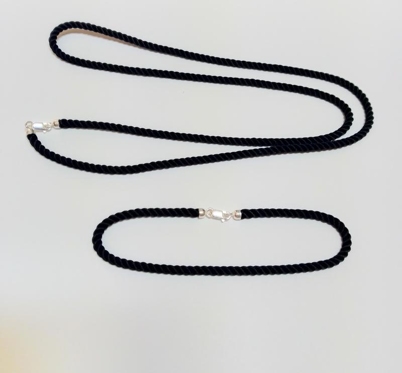 Набір шнурочок на шию + браслет (срібло) діаметр 3мм шнурочок на шию розмір від 35 до 65см браслет на руку розмір від 13 до 23см застібка зі срібла якість гарна відправка товару Укрпоштою або новою поштою