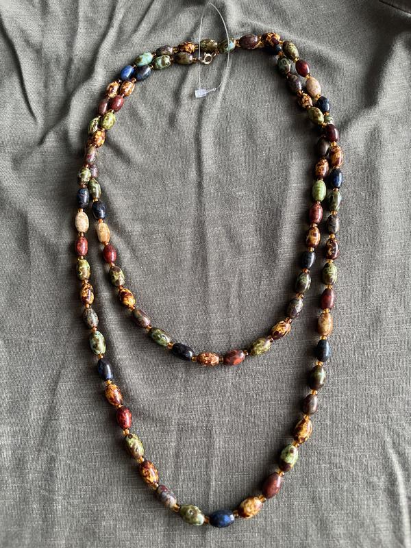 1960-е годы Длинное стеклянное ожерелье. Искусственный крапчатый агат