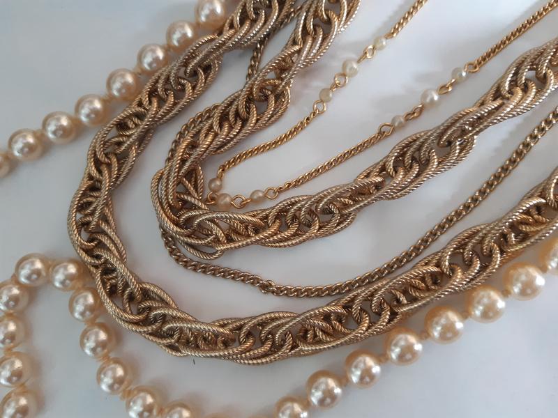 5 рядів, рівномірно потертість від часу, без сколів, брашировані ланцюги, маркування на гачку