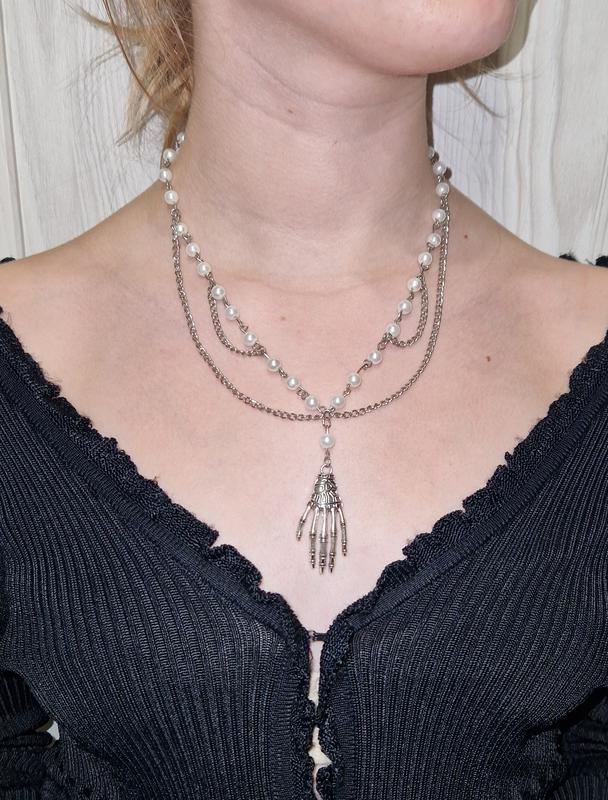 Ожерелье ручной работы, искусственный жемчуг, металл.