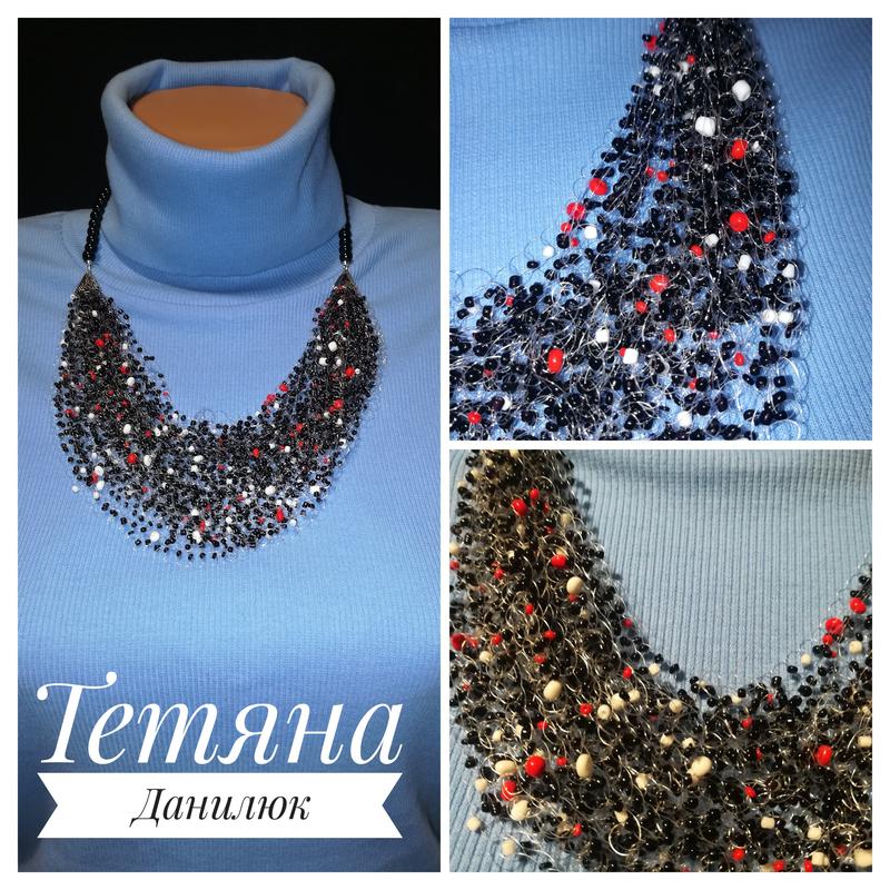 Повітряне намисто в чорному кольорі, з вкрапленнями червоного та білого. Також в наявності інші роботи.