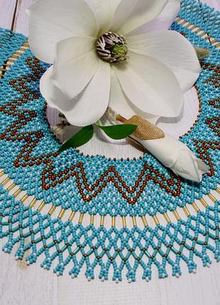 Силянка Вічність – прикраса ручної роботи виконана з чеського бісеру на віскозній міцній нитці. Силянка має замок карабін і подовжуючий ланцюжок. Довжина по шиї без ланцюжка – 39 см. Ширина – 8,5 см. Вага – 95 г.