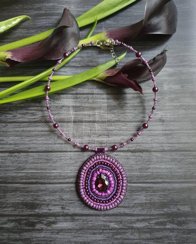 Кольє ручної роботи з підвіскою (розмір 5*5,5 см) витшитою бісером.
