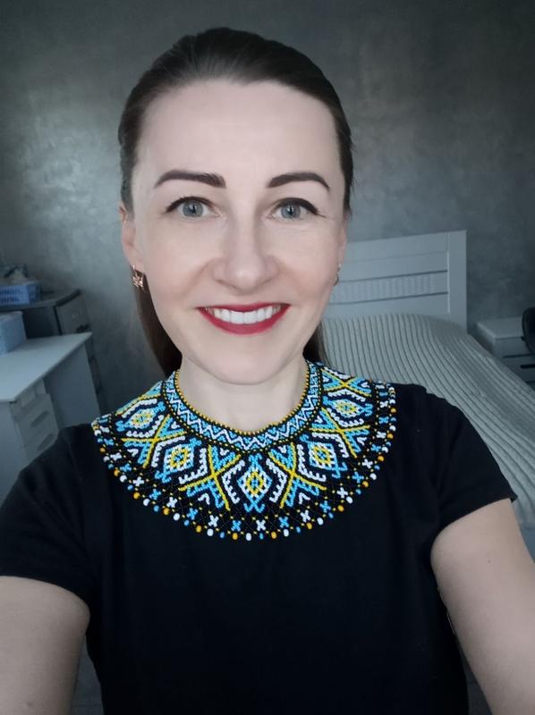 Яскрава колоритна силяночка в українському стилі, довжиною близько 34 см, з карабіном і ланцюжком -41 см, шириною 8 см.