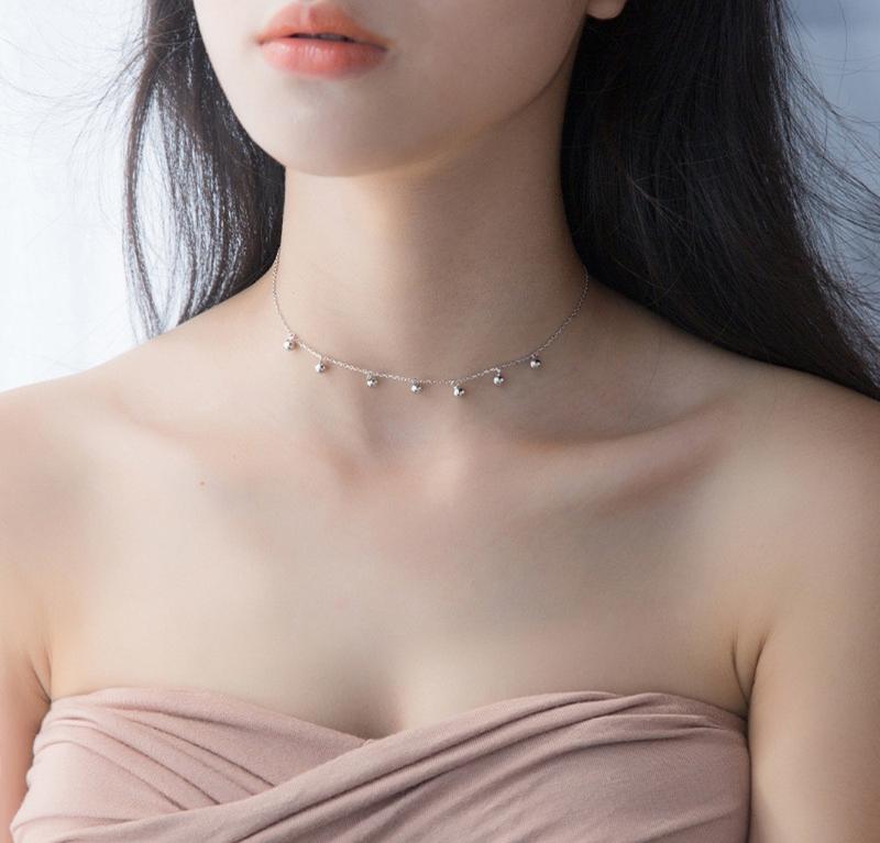 Кольє-чокер срібний з намистинами, короткий акуратний ланцюжок, срібло 925 проби, довжина 31 + 8 см