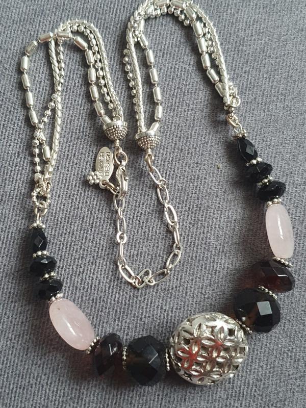 длина 37 + 8 см, бусины розового кварца, раух топаза