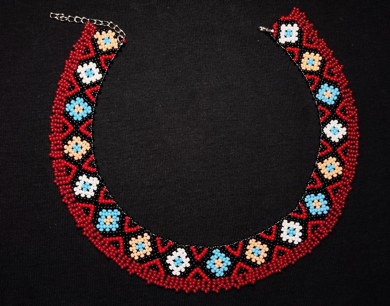 Відтворення стравинної силянки першої половини ХХ ст, Північної Буковини з книги Настасії Марусик "Старовинні буковинські вироби з бісеру". Ширина виробу - 2,5 см, довжина - 37 см, при потребі можна збільшити або зменшити.