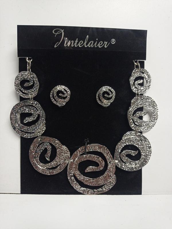 кольє крупні металічні кільця..наче звиті змії.. тиснений метал..дуже красиво виглядає..блищить..сережки в комплекті.