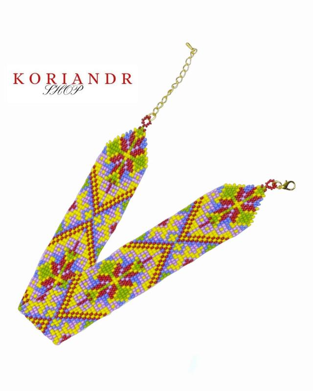 Стрічковий гердан з орнаментом Лемківщини матеріали: -Чеський бісер -Металева фурнітура Українська етно прикраса, яку зазвичай носили молоді дівчата, стане чудовим доповненням до вашого образу.