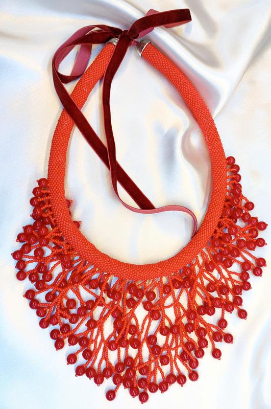 Бусы из бисера и бусин.Длина 49 см +ленки по 45 см с каждого края.