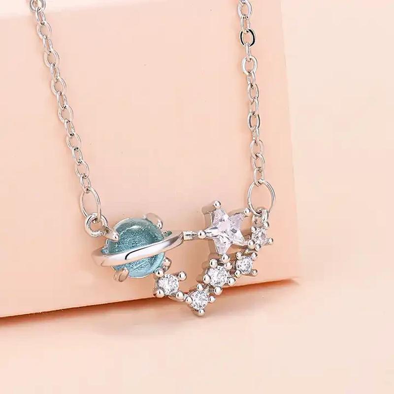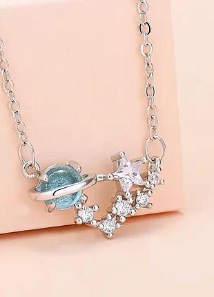 Намисто "Космічна Гармонія": це витончене сріблясте намисто з ювелірного сплаву з гарною підвіскою у вигляді блакитної планети, оточеної дрібними зірками-стразами. Ця унікальна прикраса створює враження гармонії та чаклунства космосу. ХАРАКТЕРИСТИКА ВИРОБУ: ► Унікальний дизайн із підвіскою у вигляді планети. ► Білий камінь додає блиску та елегантності. ► Регульована довжина ланцюга для ідеальної посадки. Це намисто стане чудовим доповненням до вашого повсякденного або вечірнього образу. Воно підкреслить вашу індивідуальність і надасть загадковості вашому стилю. Намисто поєднує в собі елегантність та оригінальність. Його унікальний дизайн приверне увагу та підкреслить вашу витонченість.