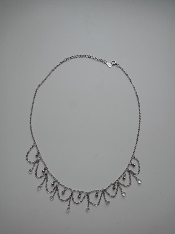 Намисто з тоненьких срібних ланцюжків, кульок і фіанітів. Дуже жіночне та витончене. Довжина: 35 + 5 см