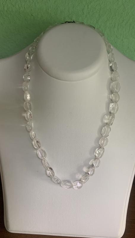Намисто з природнього гірського кришталю овальної форми,довжина 43см, застібка карабін.