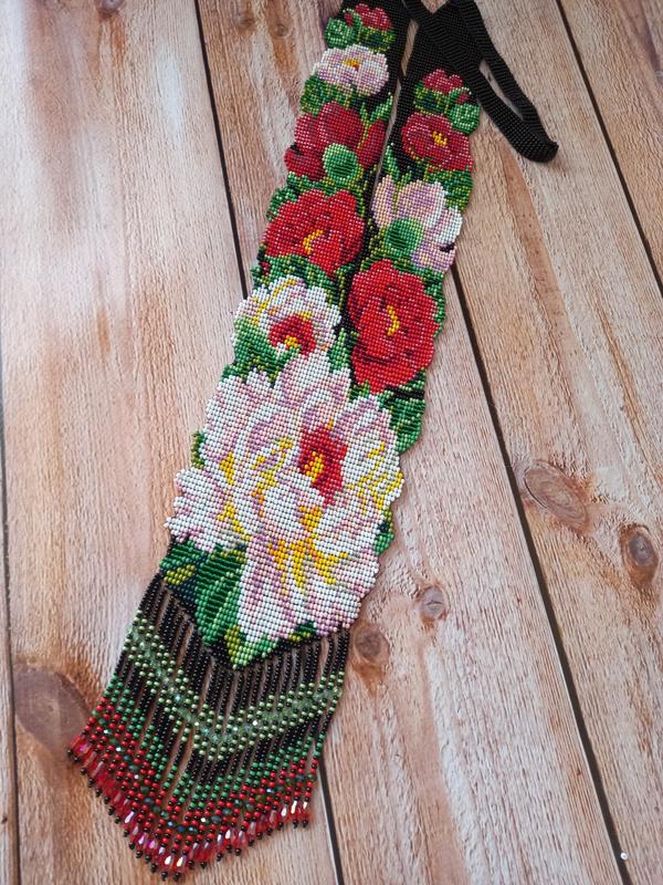 гердан зроблений з чеського бісеру з додаванням ронделів на знизках