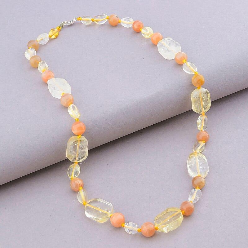 Артикул: 090486 Розмір каменю: 18х13 мм. Бренд: SUNSTONES Тип замочка: Карабін Довжина: 48 см. Діаметр: 8,5 мм. Матеріал: Сталь Якість: гарна Камінь: Сонячний камінь (нат.) Камінь2: Цитрин (нат.) Колір: Жовтогарячий Колір: Жовтий Колір: Срібний Вага: 44,24 г.