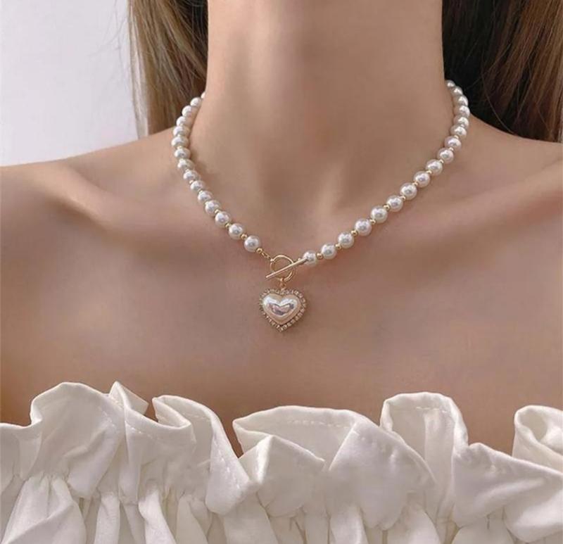 Колье буси зі штучними перлинами підвіска сердце лассо