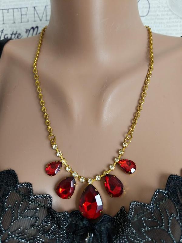 Біжутерія.Метал покриття. Довжина ланцюжка 60 см + 4 см довжина більшого червоного камінця 2.5 см