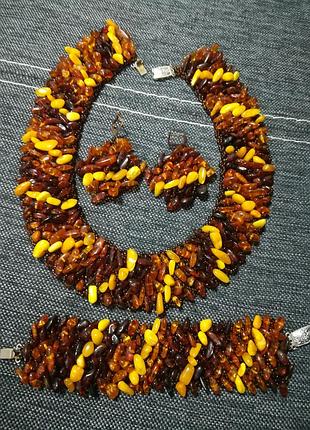 Комплект - ожерелье, браслет из натурального янтаря. ручная работа.