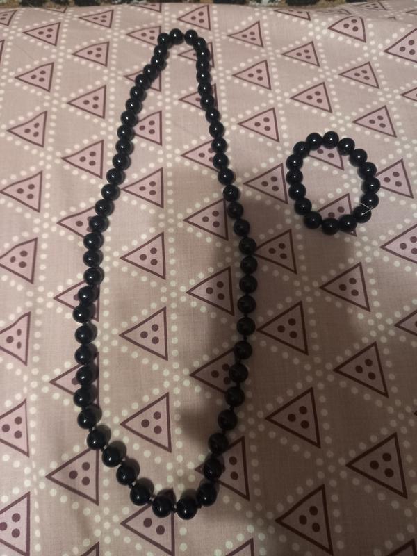 набір чорного кольору, вдягали буквально 2 рази, в ідеальному стані. браслет на резинці, тягнеться, тому підійде як на вузьку так і на широку руку, за потреби надам додаткові фото Рекомендую відправку через Укрпошту, так набагато дешевше ніж Новою поштою.
