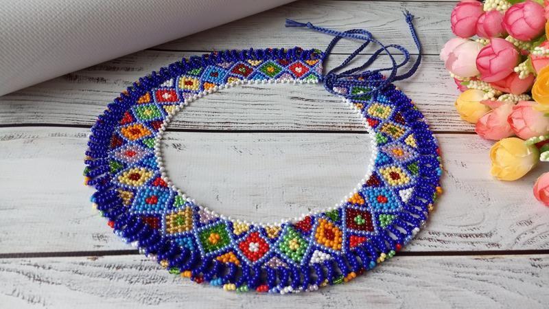 Реконструкція старовинної силянки Закарпаття. Довжина силянки навколо шиї-39см. Ширина н -3,5см. Зав"язки по-30 см, ними зручно регулювати довжину. Чеський бісер, міцна нитка Товар виготовляється на замовлення, 2-3дні