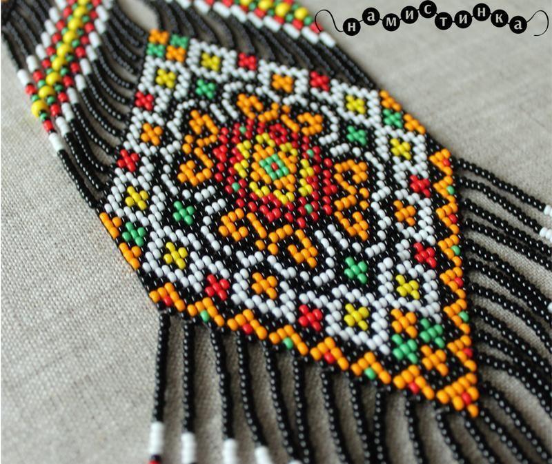 Прикраса, виконана чеським бісером та міцною ниткою. Довжина 53 см, ширина медальйона 7,7 см. Товар виготовляється на замовлення