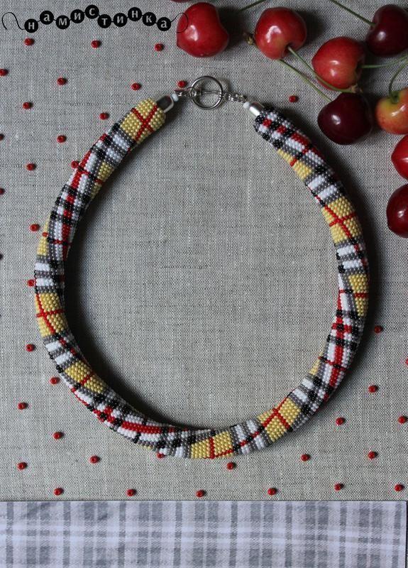 Прикраса, виконана чеським бісером та міцною ниткою. Довжина 51 см, товщина 1,7 см.