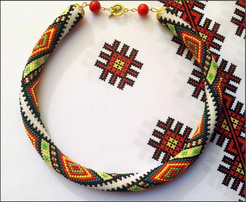 Жгут из бисера связан крючком на прочной турецкой нитке. Приятный на ощупь, гибкий. Модель данного жгута отличается великолепной цветовой гаммой и своим неповторимым этническим стилем. Длина изделия 48 см, толщина - 1,4 см. Это украшение прекрасно дополнит любой наряд, особенно в этно стиле. Термін виготовлення джгута 5-7 днів. При замовленні Ви можете обрати кольорову гаму джгута на свій смак та його довжину. Товар под заказ