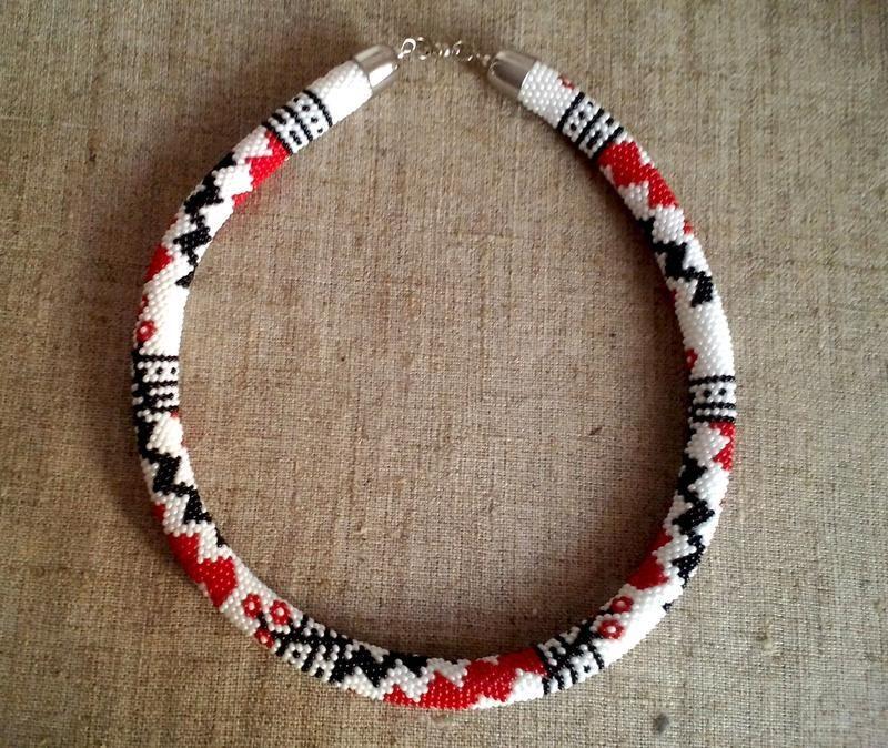 Джгут з чеського бісеру. Довжина 50 см, дуже зручна магнітна застібка. Виконан в традиційних кольорах української вишивки за мотивами народних орнаментів. Стане прекрасним доповненням Вашого повсякденного, святкого вбрання і вбрання в етно стилі. Товар виготовляється на замовлення