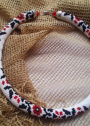 Джгут з якісного чеського бісеру та металевої фурнітури під срібло, дуже зручна магнітна застібка. Цей джгут, виконаний у етно стилі за схемою Olga Sokoliss, може стати як Вашою улюбленною прикрасою, так і чудовим подарунком. Довжина джгута - 51 см, діаметр - 13 мм (15 бісерин у колі). До джгута є браслет, його можна придбати з джгутом або окремо, вартість браслету - 275 грн. За бажанням покупця можу зробити сережки до комплекту. Доставка Новою поштою та Укрпоштрою за рахунок отримувача після передоплати на карту ПБ, також можлива оплата наложеним платежем. Товар виготовляється на замовлення