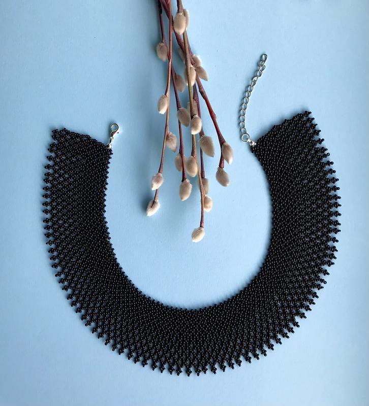 Ширина 4,5 см, довжина по внутрішньому колу — 36 см (+5 см подовжуючий ланцюжок). На замовлення можна виготовити іншої довжини (ширини) та кольору.