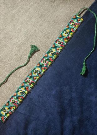 Стрічковий ґердан з українським орнаментом на зав'язках, виконаний з японського бісеру Matsuno, має яскраві і насичені кольори Довжина бісерного полотна - 37 см, всього виробу разом із зав'язками - 90 см. Ширина виробу - 3 см.