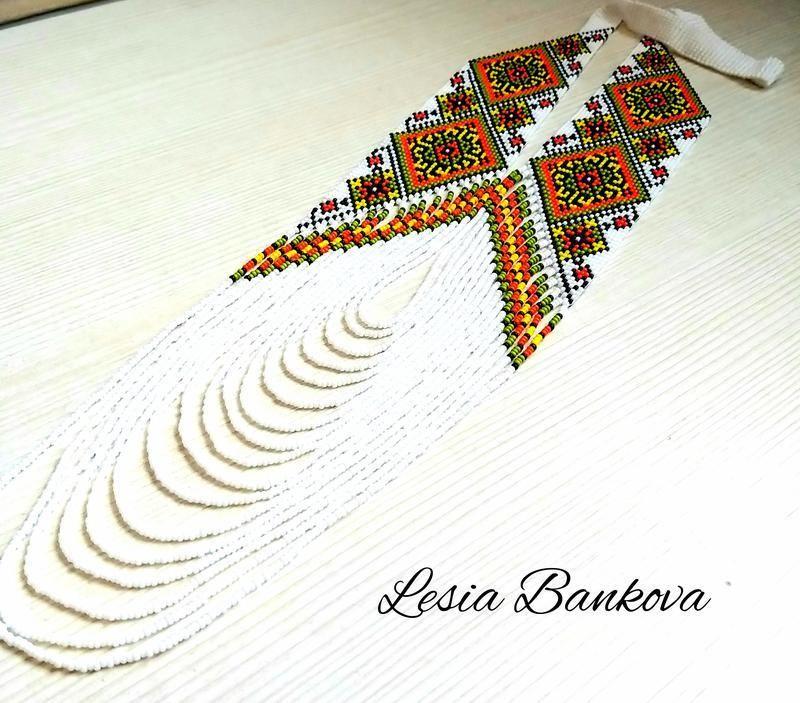 Работа изготовлена из чешского бисера на прочной нити. Ширина плетеной части 4.5 см. Длина 53см Товар под заказ