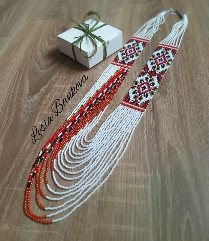 Робота виготовлена з чеського бісеру на міцній нитці. Ширина 3,5 см . Довжина 50см +подовження ланцюжком.Можу змінити кольори за вашим бажанням. Товар виготовляється на замовлення. Якщо у вас є запитання просто напишіть мені.