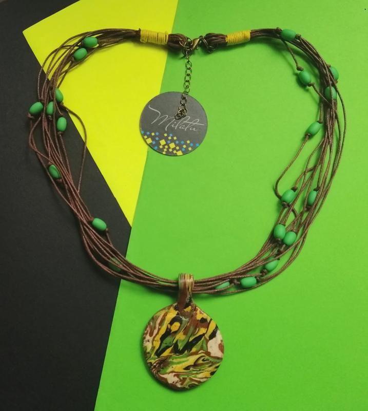 Намисто з дерев'яних намистин і підвіски з полімерної глини на бавовняних шнурах Додаткові характеристики: Колір: Зелений Матеріал: Дерево Матеріал: Полімерна глина