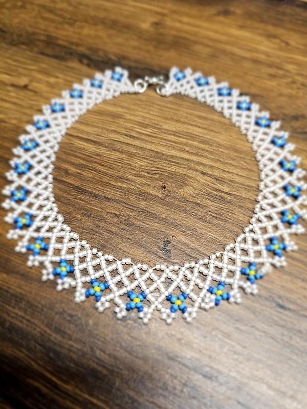 Нежная силика с белым матовым бисером в основании. Длина с застежкой 37 см, ширина 2 см