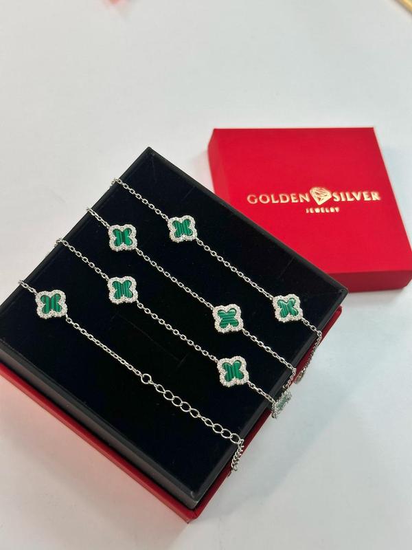 Жіноче срібне кольє зі вставками малахітів та фіанітів