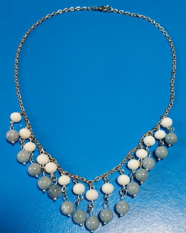 Колір: Інший колір Матеріал: Комбінований матеріал Кольє з намистинами – натуральний халцедон + імітація нефриту. 45 див.