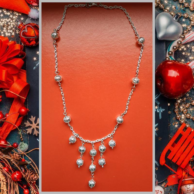 Кілька примірників у наявності Кольє з якірній ланцюга, з філігранними намистинами (сріблястий метал). 42 см 110 грн