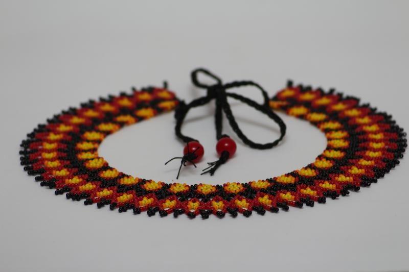 Виготовлена з чеського бісеру, навколо шиї регулюється завязками, довжина 40 см