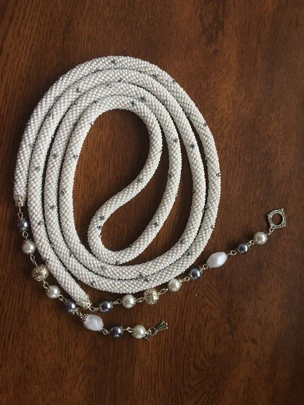 Ларіат 180 см. Матеріал чеський бісер, чеський хрусталь, фурнітура. Гідність ларіату в тому, що його можна використовувати не тільки як намисто, але і в якості поясу! Довжина виробу дозволяє різні варіанти декарирования одягу.Також можливе виконання даного ларіату в будь-якому поєднанні кольорів за бажанням Замовника або до укомплектування іншими аксесуарами - браслет, сережки. Товар виготовляється на замовлення