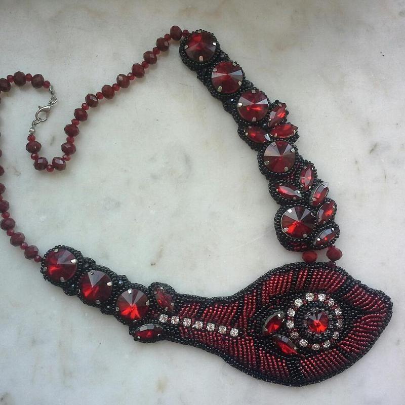 Кольє "червоне перо"