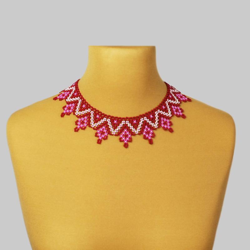Кольє з бісеру бордово-рожеве