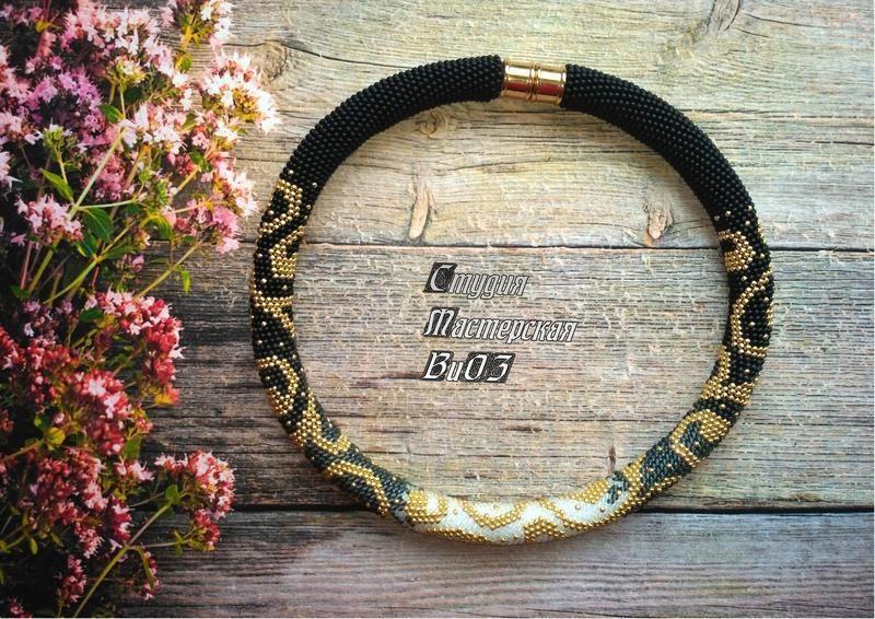 У роботі використаний чеський і японський бісер ( золотий колір) з стійким до стирання покриттям .Використано магнітний замок Характеристики: Розмір довжина готового виробу 48 см,товщина 1.2 см
