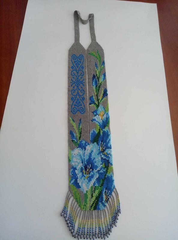 >Оригінальна прикраса з бісеру - гердан з квітами лілій - перетворить будь-яку Вашу блузу або сукню - на оригінальне вбрання! Гердан сплетений вручну із дрібного чеського бісеру. Незвичайний і бажаний подарунок - як молодій дівчині, так і для зрілої жінки. Приблизна довжина прикраси - 56 см, ширина - 8 см Товар виготовляється на замовлення