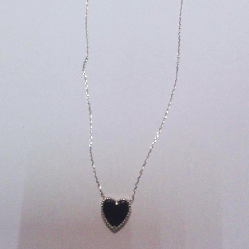 Серебряное колье сердечко с ониксом, размер 40 см x 0,1 см, вес: 2.8 г