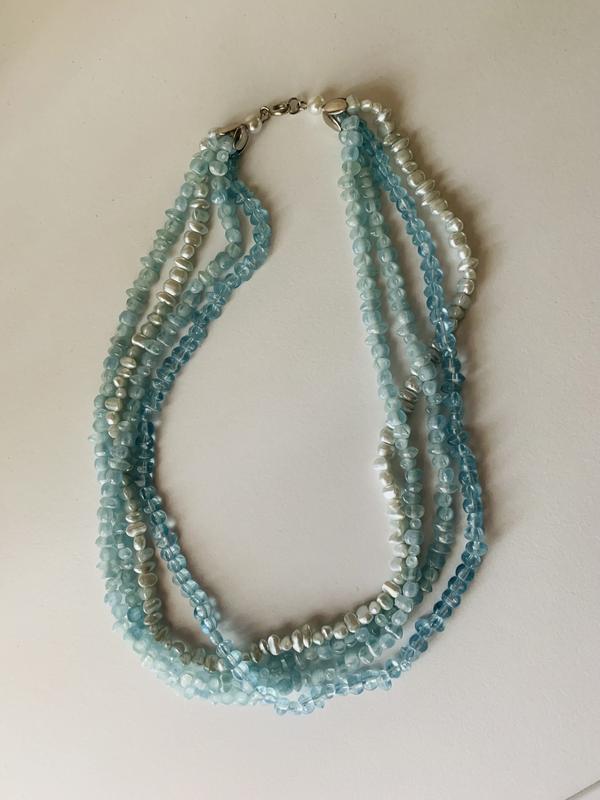 Пориньте в глибини елегантності з цими багатоярусними намистами кольору морської хвилі. Ці унікальні намисто, виконані з бездоганною майстерністю, стануть родзинкою вашого гардеробу. Витончені переливи синяви та бірюзи нагадують спокій і силу океану, надаючи вашому образу нотки розкоші та свіжості. Намиста ідеально підійдуть як для повсякденного вбрання, так і для особливих випадків, підкреслюючи вашу індивідуальність та стиль. Відчуйте магію морських хвиль із цими прекрасними прикрасами та виділитеся з натовпу!