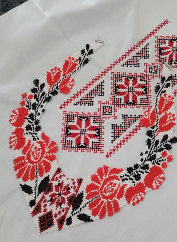 гердан-кольє . Прикраса із бісеру на шию. Ручна робота. Техніка - ручне ткацтво
