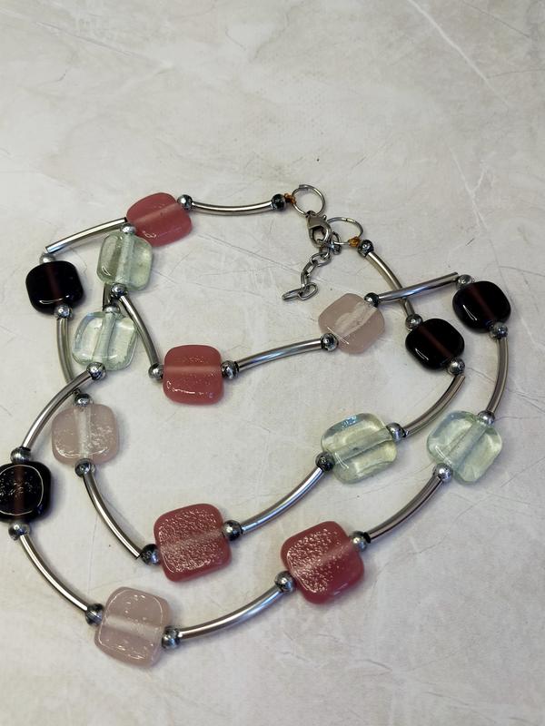 Кольє, намисто муранське скло. Матове, прозоре. Довжина -76,5+4см. Намистина -1,5*1,6см.