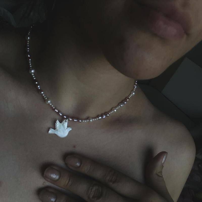 Колье «голубь мира» «горлиця» из жемчуга и перламутра