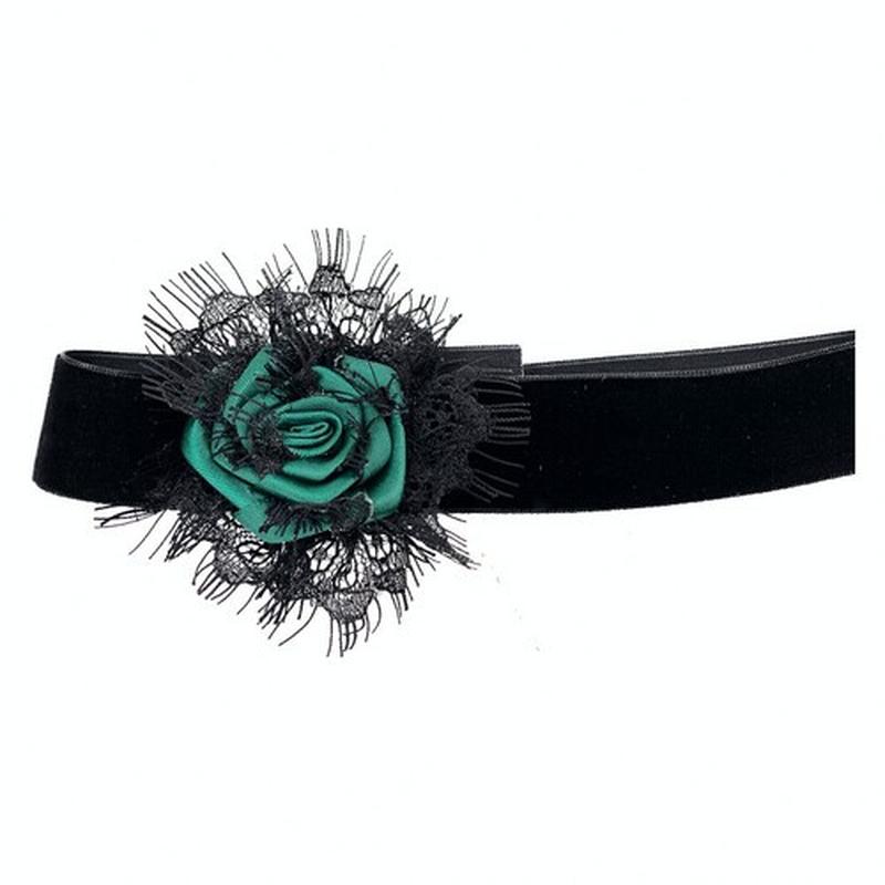 Оригінальний чокер, декорований мереживом і трояндою, на оксамитовій стрічці (на липучці), допоможе Вам створити витончений і вишуканий образ маркізи Версаля, придворної дами, стане прекрасним доповненням готичного образу. Довжина — 37 см, ширина — 2.5 см. Розмір квітки — 9 х 9 см.